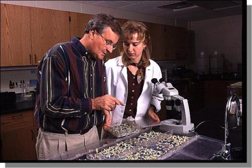Denis and his protégé Lisa Shepherd in the seed pathology lab